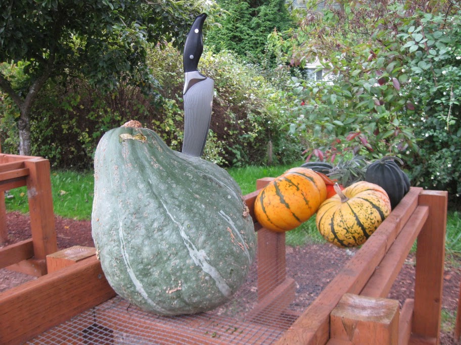 | Caaarefully open the hubbard; the skin is tough (but edible & full of fiber!) |