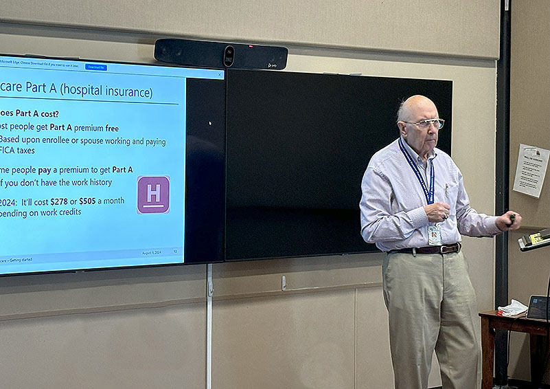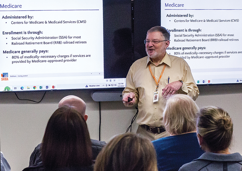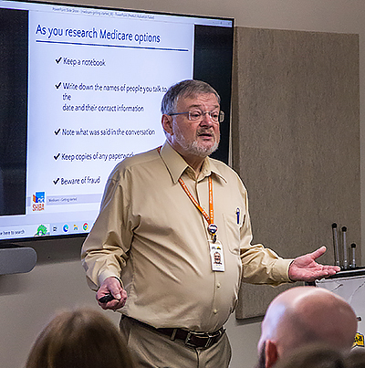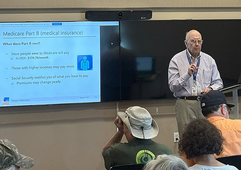 SHIBA volunteer Larry Cole leads a Welcome to Medicare class (photo by Rachael Green).