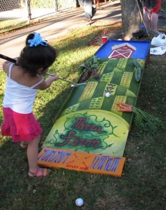 But I learned that as part of the National Night Out Against Crime, the group South Park Arts organizes a mini-golf course each year, and this year they had invited Lettuce Link to sponsor a Marra Farm hole.