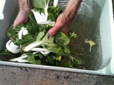 When I arrived for a visit yesterday, Farmer Scott and the volunteers were carefully washing bok choy and harvesting cilantro. The cilantro leaves had already bolted, but it was the roots that were being harvested. Cilantro root is rarely seen in most grocery stores, but Rainier Valley Food Bank clients use it to prepare soups, curry pastes, and more. Talk about a specialty crop!