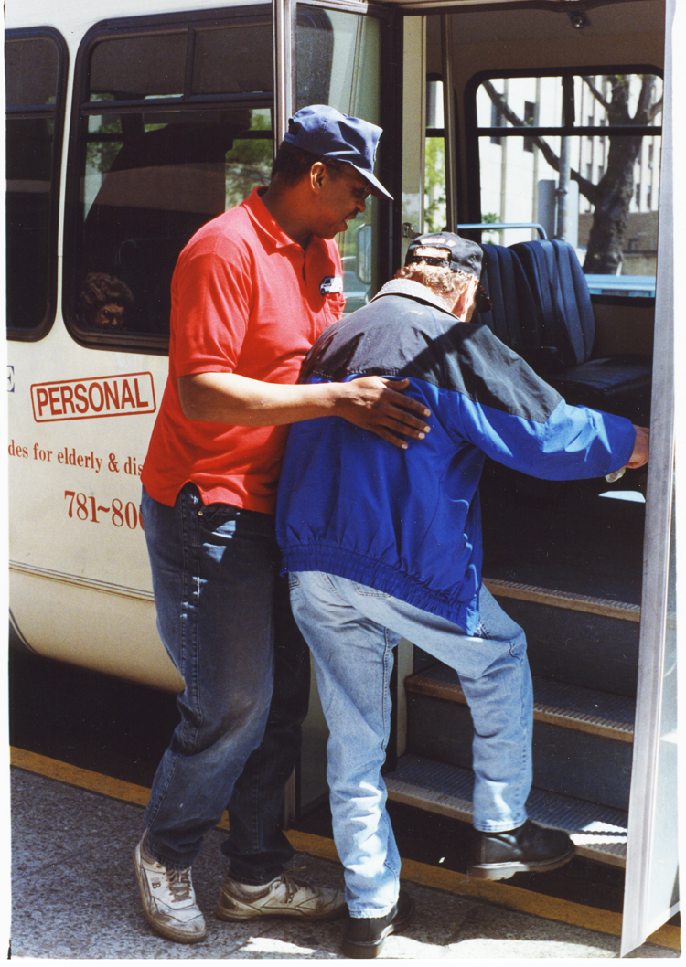 - SGT driver Ninus Hopkins assists a passenger (circa 1995).