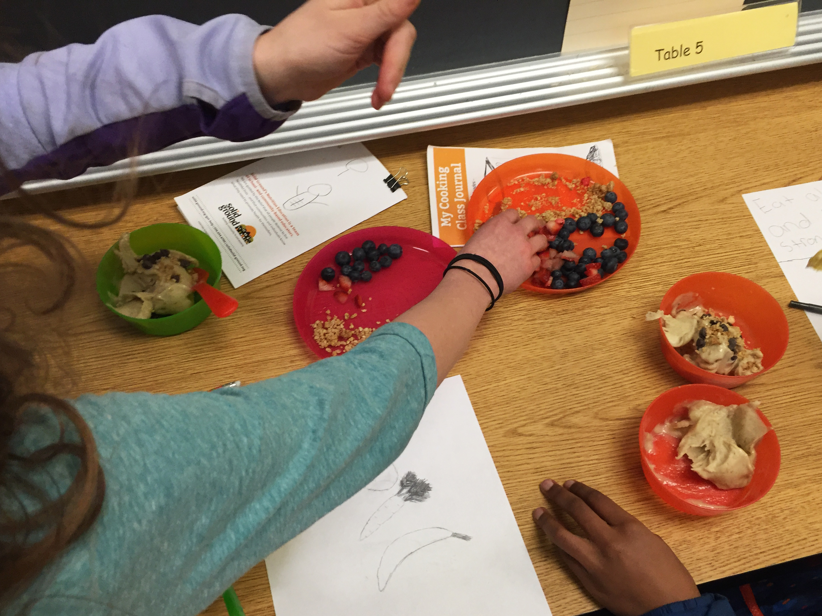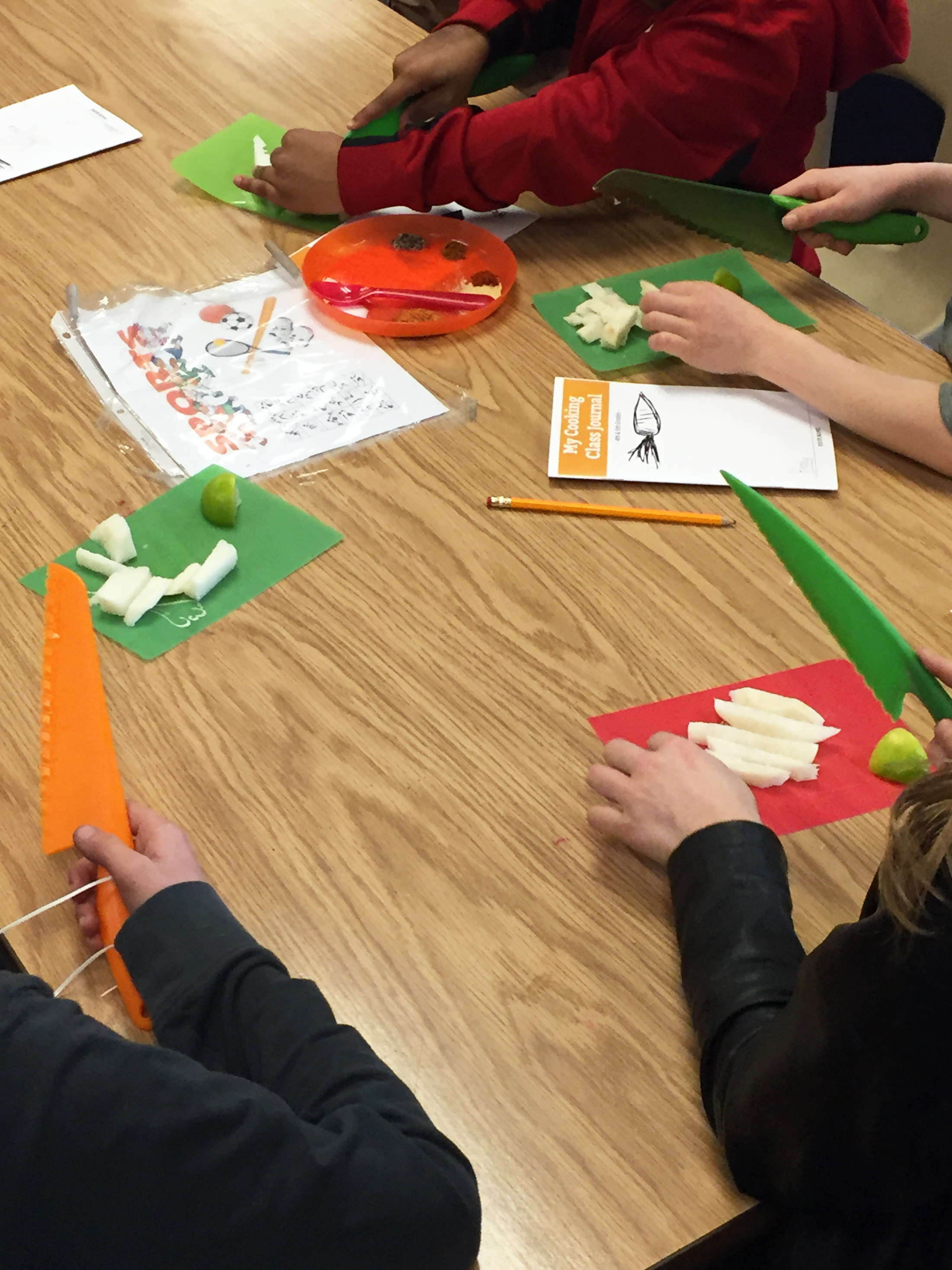 Through these activities, students can gain the understanding that time, transportation and money are all barriers that people face when shopping for food. At least half of the class time is spent on cooking and eating to teach fundamental cooking skills and nutrition basics.