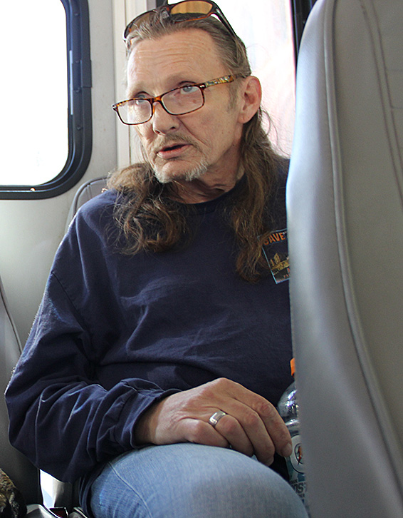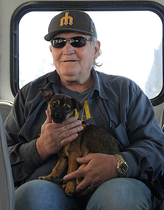 Randy and his friend Mickey – along with Thumper, Mickey’s “chub” (a cross between Chihuahua and pug) – are regulars on the Circulator. “I take it almost every day,” Mickey says. Joe says the best part of his job is the riders: “The people have been great – polite, respectful. There’s some who’ve ridden it from the very beginning, and some come and go. People will get back on the bus who we haven’t seen in two years. Sometimes they give me a report – where they’ve been, what they’re up to.”
