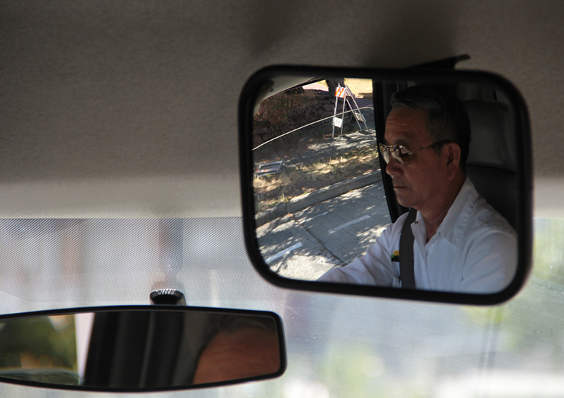 The Circulator’s two buses circle around and around, 7am-4pm, Monday-Friday – about 25 minutes apart, traffic depending – with stops strategically located near a wide variety of health and human services. One of our founding Circulator operators, Solid Ground Transportation (SGT) Driver Joe McCrea, has driven the Circulator since the service began in the fall of 2012. “That’s a lot of circles!” he says, quickly adding, “I like it.”