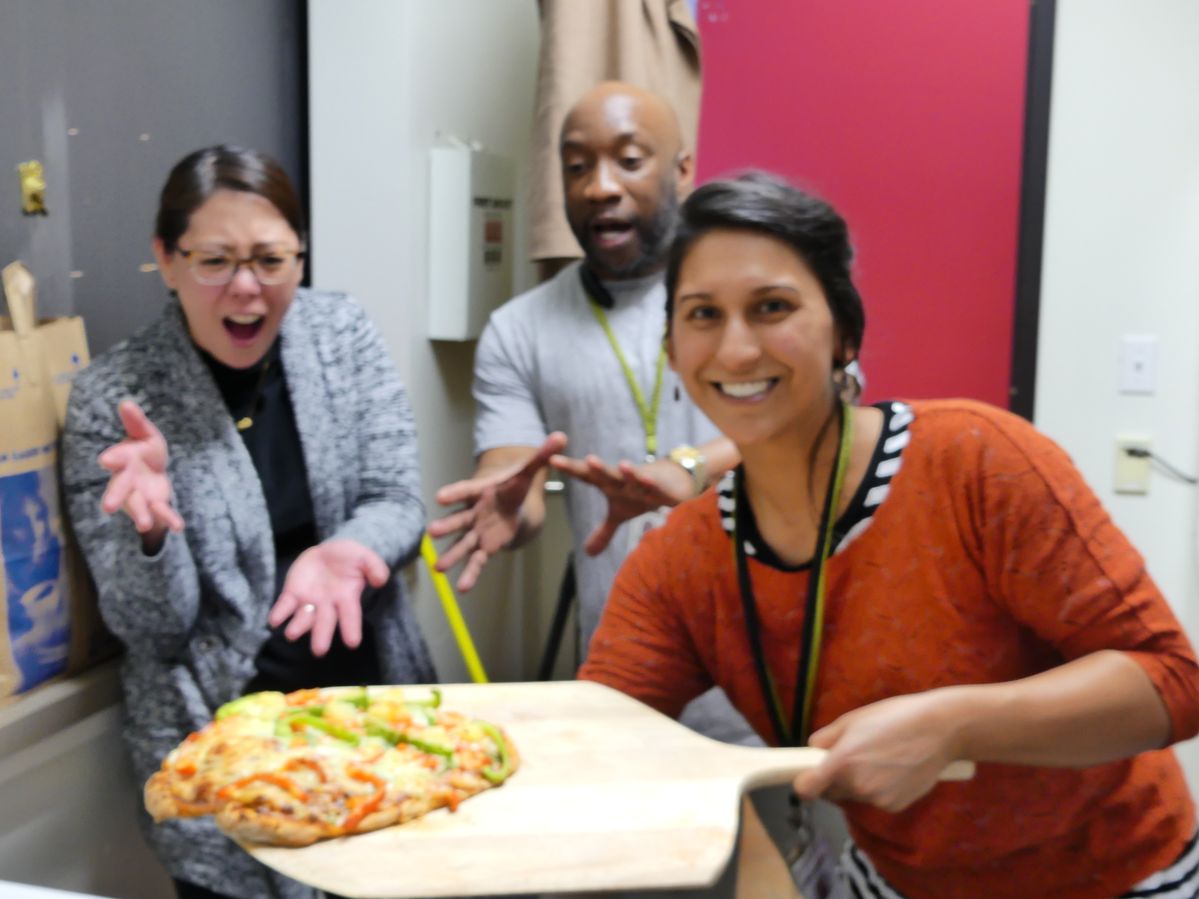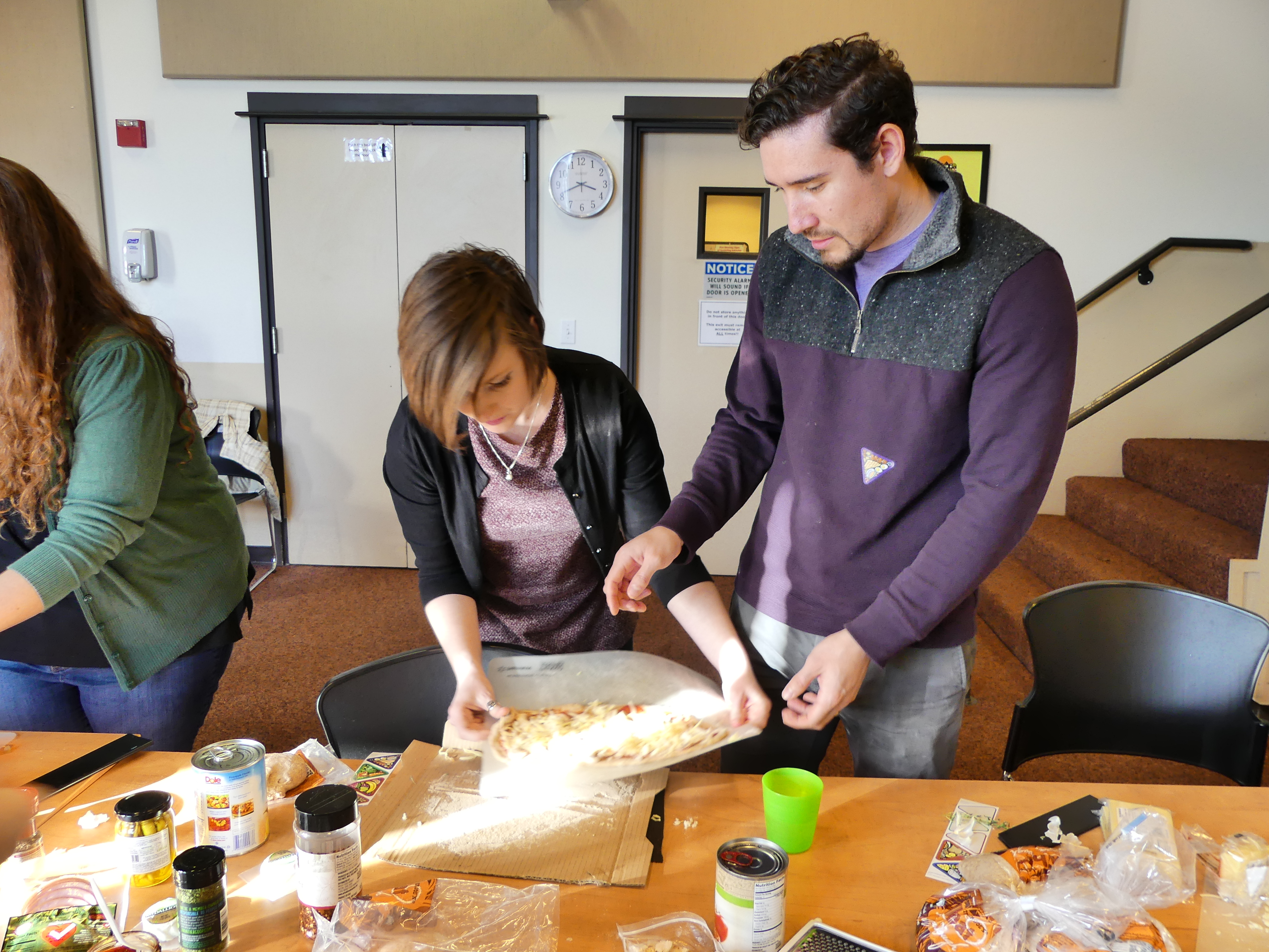 The pizza building went way above and beyond my expectations. All of our pizzas (and a couple of experimental calzones) successfully made it to the oven and were eaten up without a hitch. It was such a pleasure to be able to taste-test so many amazing flavor combinations. Even a half-and-half split between Cynthia and Amy created a colorful juxtaposition that I’m sure had the same effect in flavor.