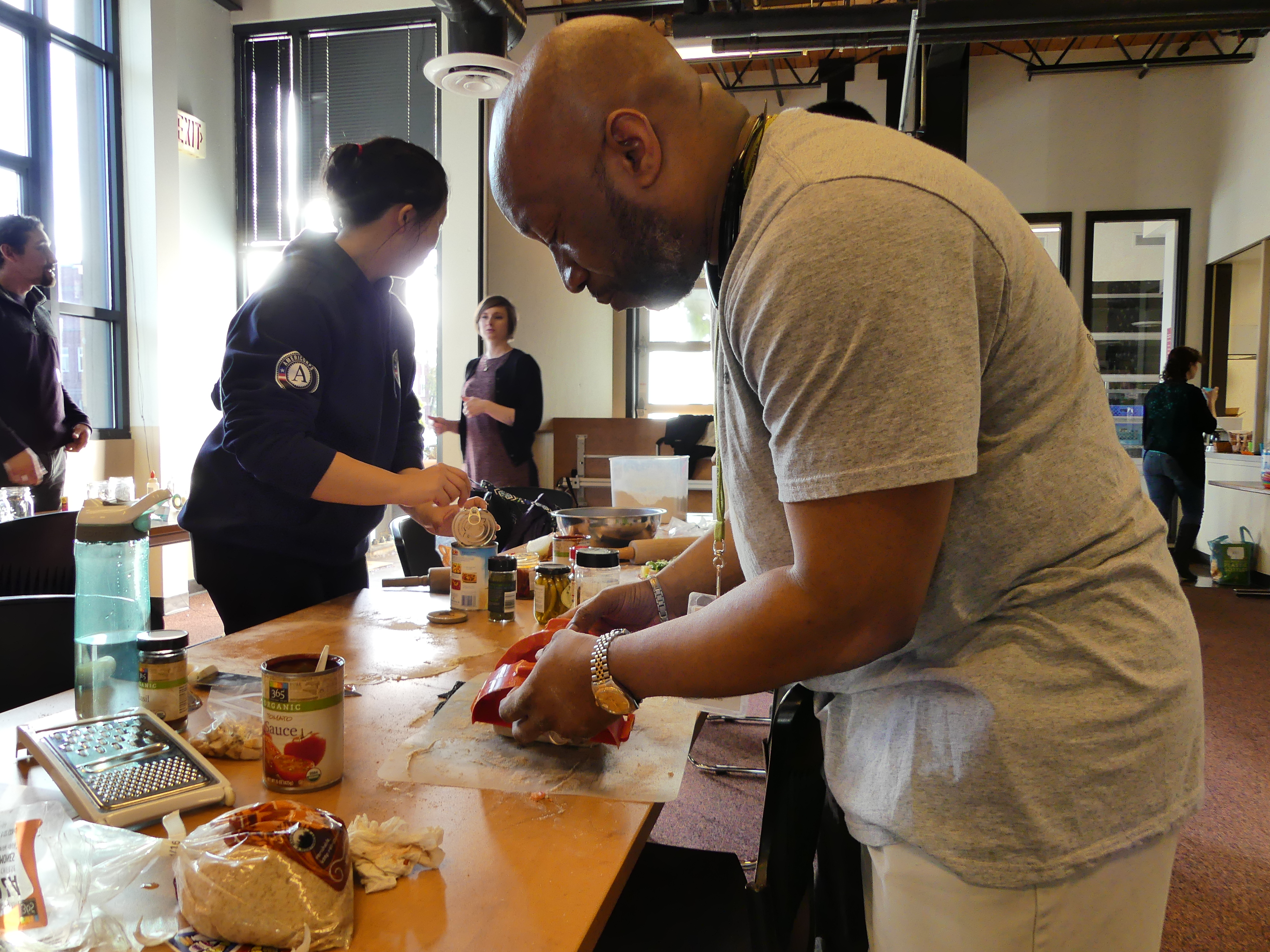 Cooking Matters thanks our fantastic volunteers for helping to make our celebration on Saturday, February 27 so much fun! I am still in a nostalgic food coma from such a wonderfully diverse selection of pizza that I could enjoy, especially without receiving a charge per-slice. Here’s a recap of our fun evening of pizza building, apron decorating and terrarium creating activities.