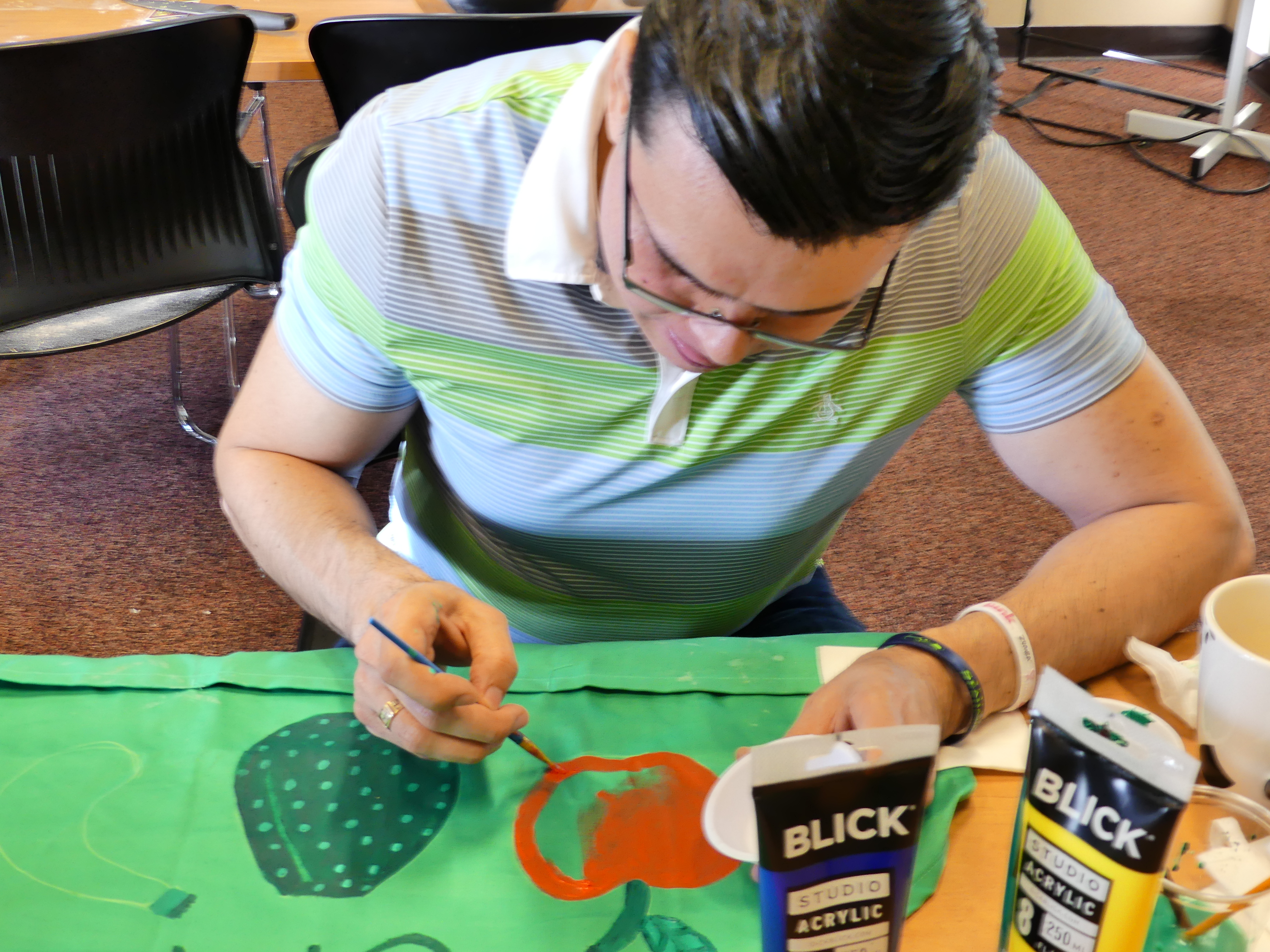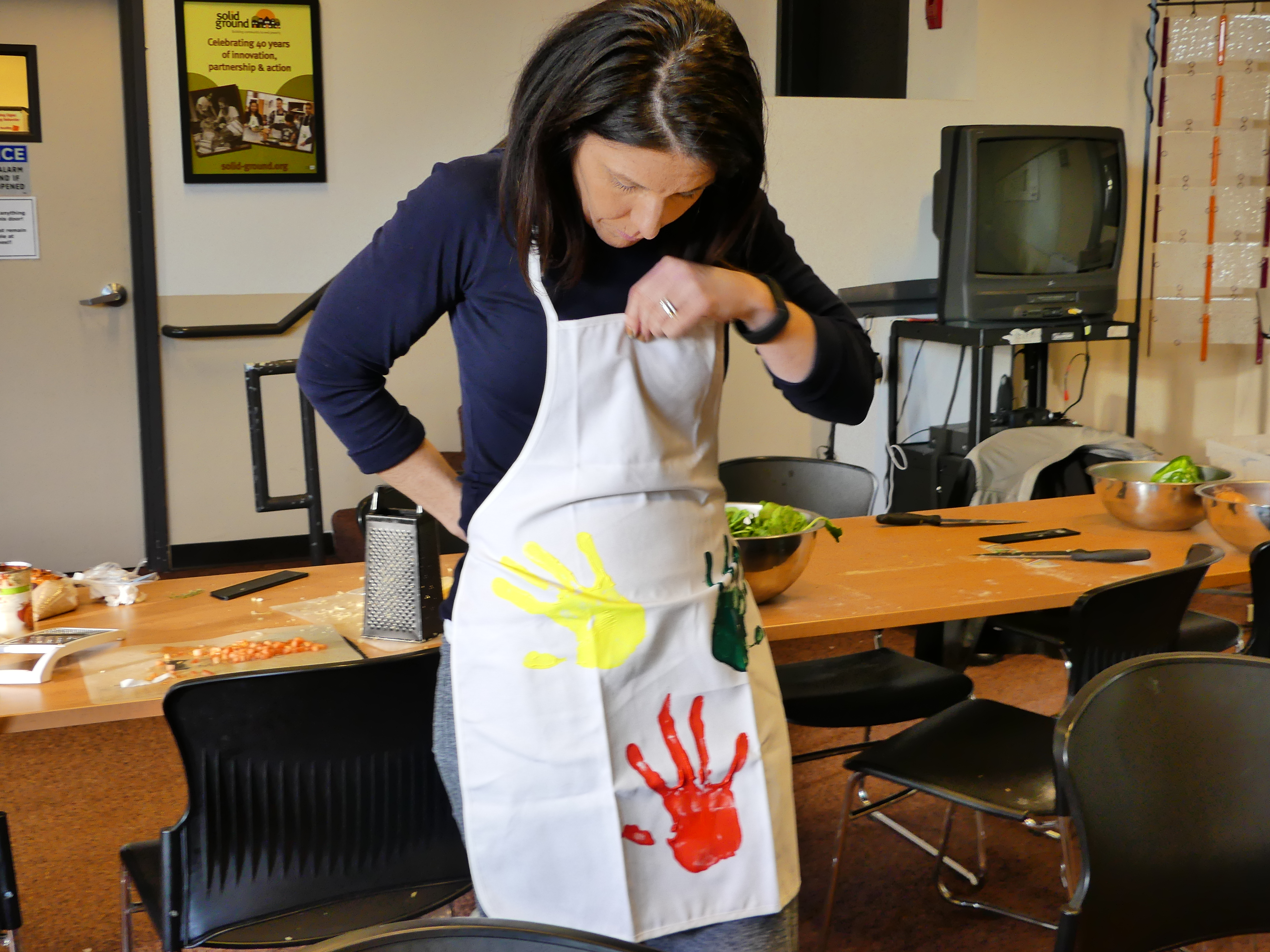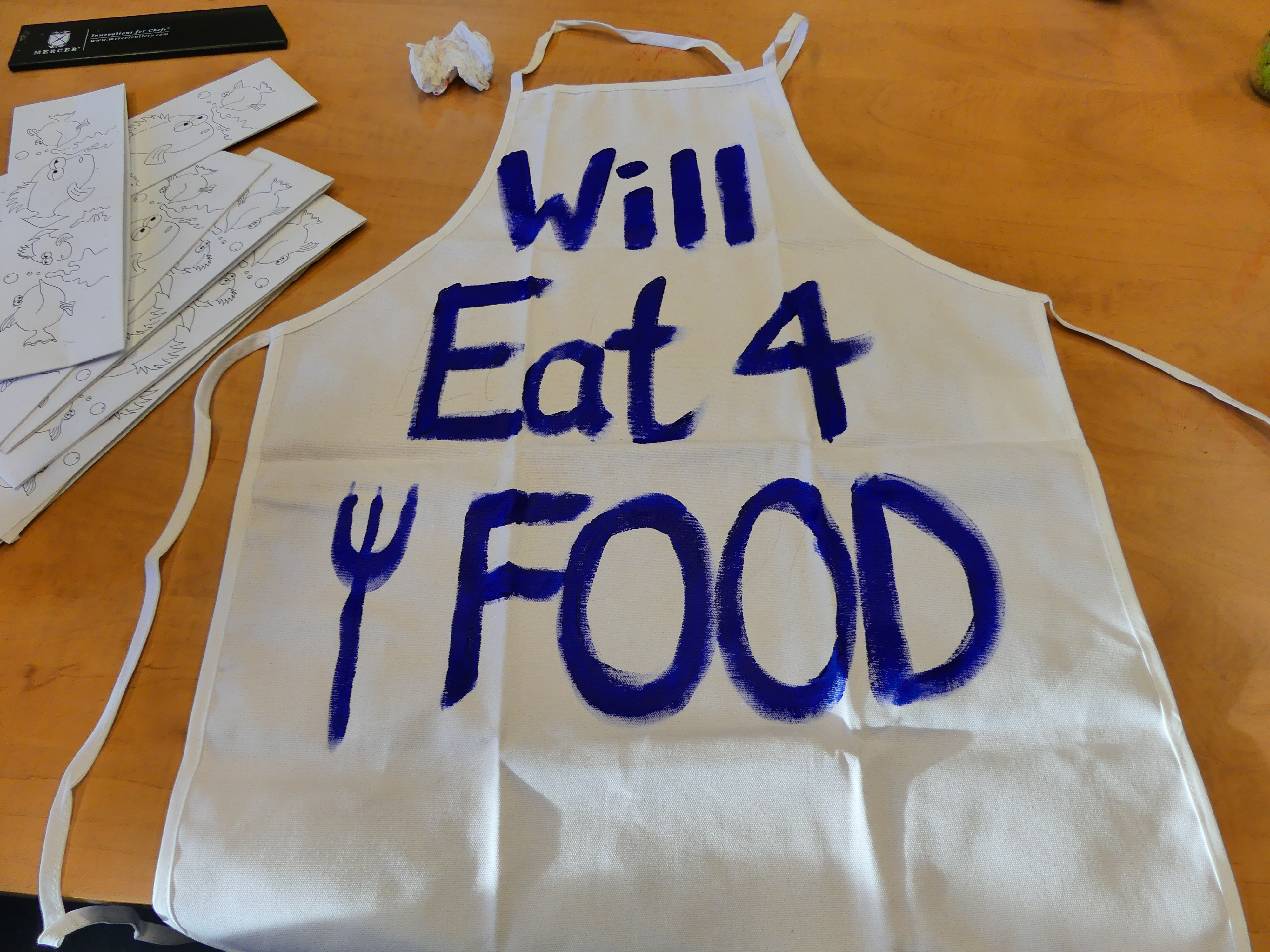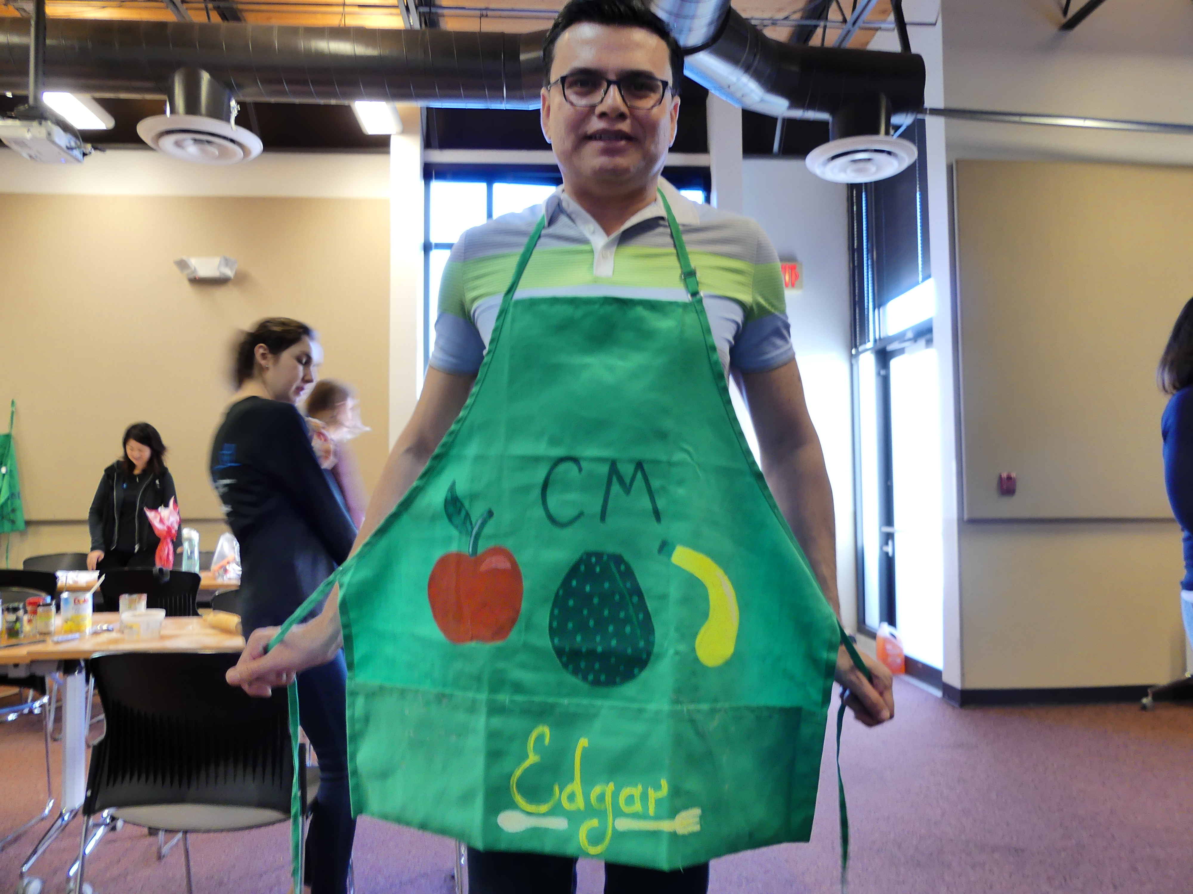 As far as the crafts go, we had a serious creativity blast. I’m proud to say our volunteers will be much more colorful in the next round of classes with their beautifully decorated aprons. Edgar revealed his artistic talent through a fruit portrayal that even incorporated shading.