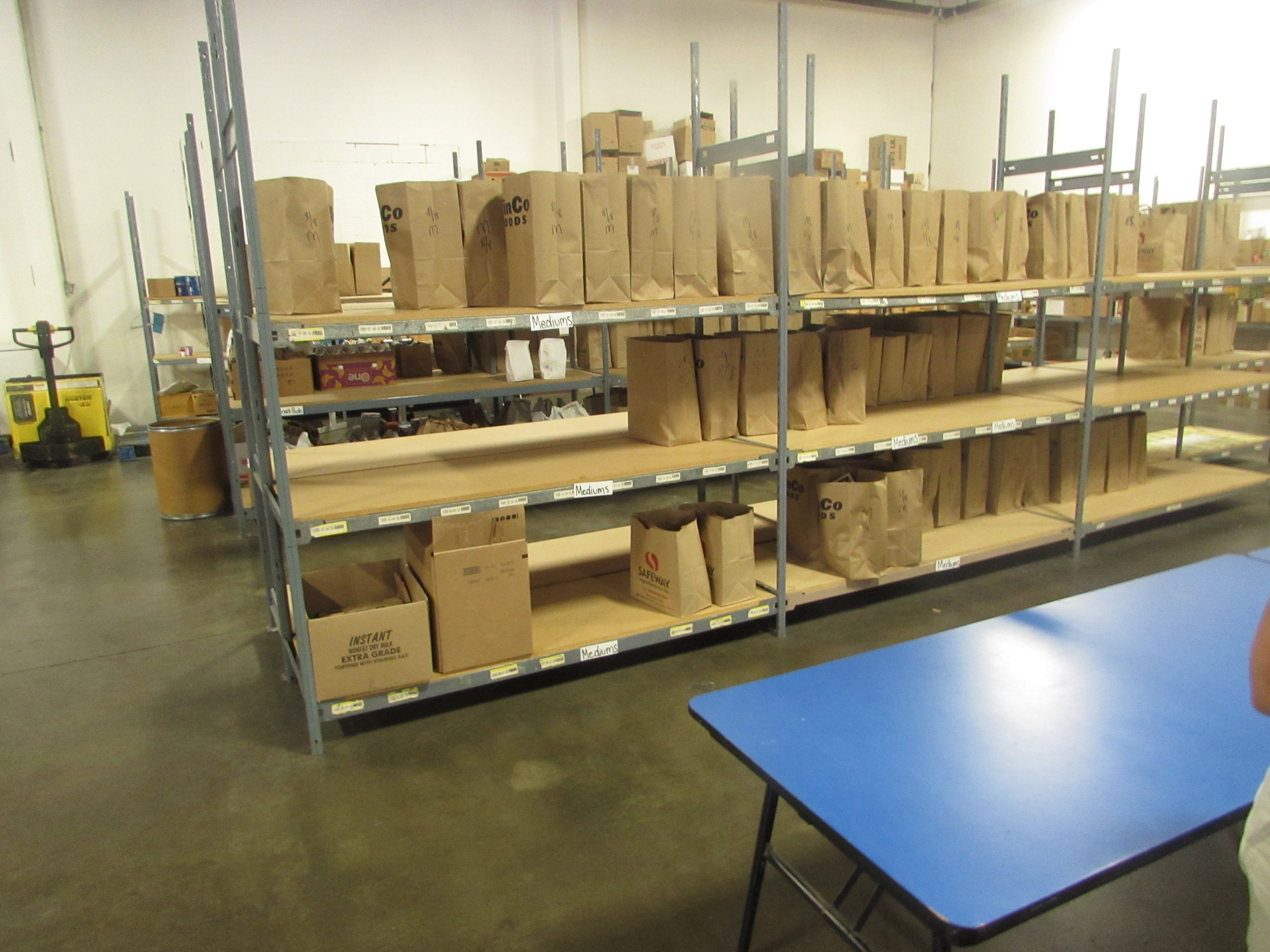 - The Emergency Feeding Program shelves bags of food