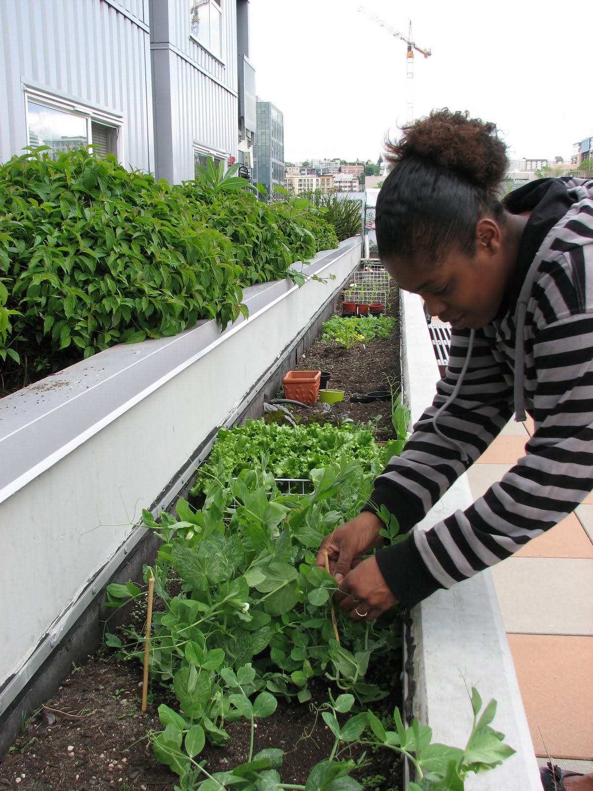 Thanks to a dedicated volunteer group at the Wallingford Greenhouse, Lettuce Link has been able to donate plant starts to communities across Seattle. Residents of the Low Income Housing Institute’s sustainably-designed Denny Park Apartments began gardening in a community terrace after receiving starts from Lettuce Link four years ago.