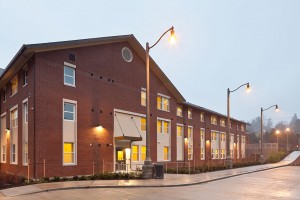 Charles Hamilton, VISTA Volunteer in 1996, offering employment advice to a customer in the Aurora Building