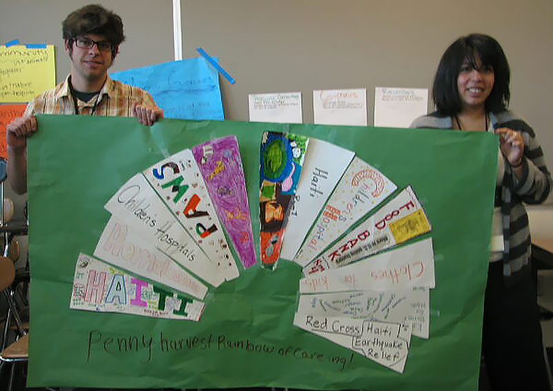 Washington Reading Corps team members Andrea and Kevin display the Rainbow of Caring.