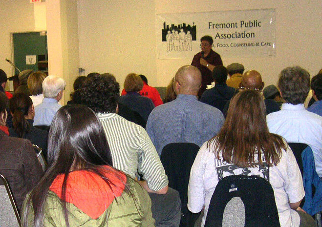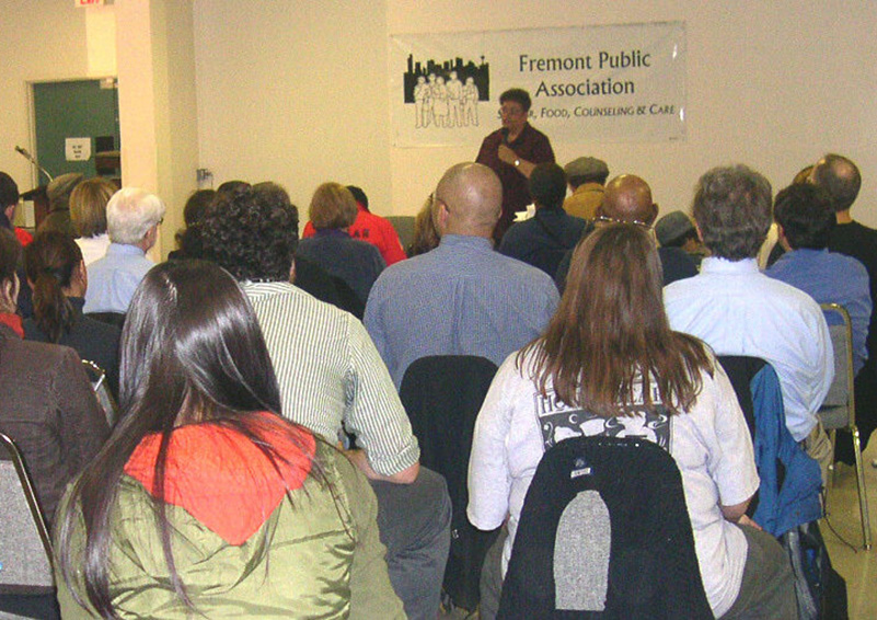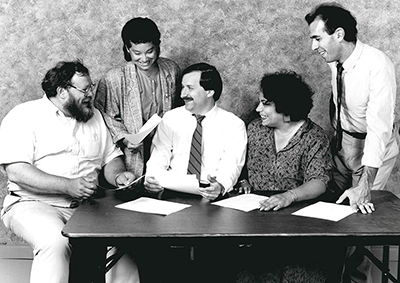 Cheryl Cobbs Murphy (second from left), Frank Chopp (center) and other leaders at the Fremont Public Association (FPA) around 1988.