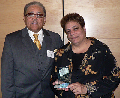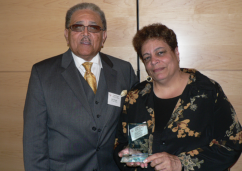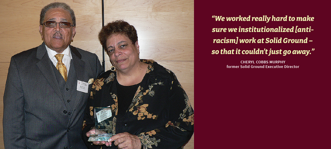 Cheryl poses in 2007 with Ron Chisom, cofounder of the People's Institute for Survival and Beyond, as she accepts the first-ever Ron Chisom Anti-Racism Award from the Seattle Human Services Coalition.