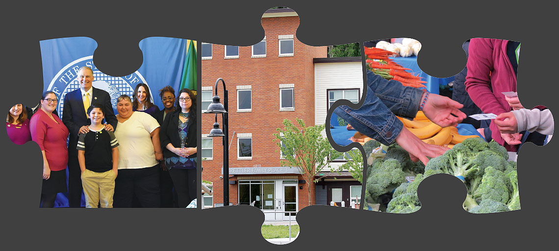 AllHome staff Kira Zylstra and Felicia Salcedo; Colleen Echohawk, Chief Seattle Club/All Home Coordinating Board; Solid Ground CEO Gordon McHenry, Jr.; and All Home's Danielle Winslow.