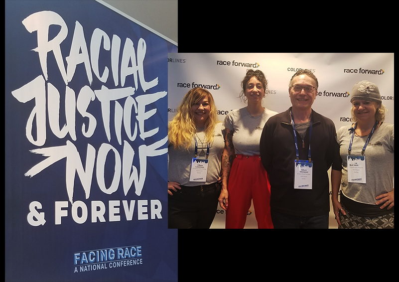 Solid Ground staff members attend the Facing Race 2018 Conference in Detroit (l to r): Tiffany Lamoreaux, Jordan Billiot, Arturo Velasquez & Liz Reed Hawk