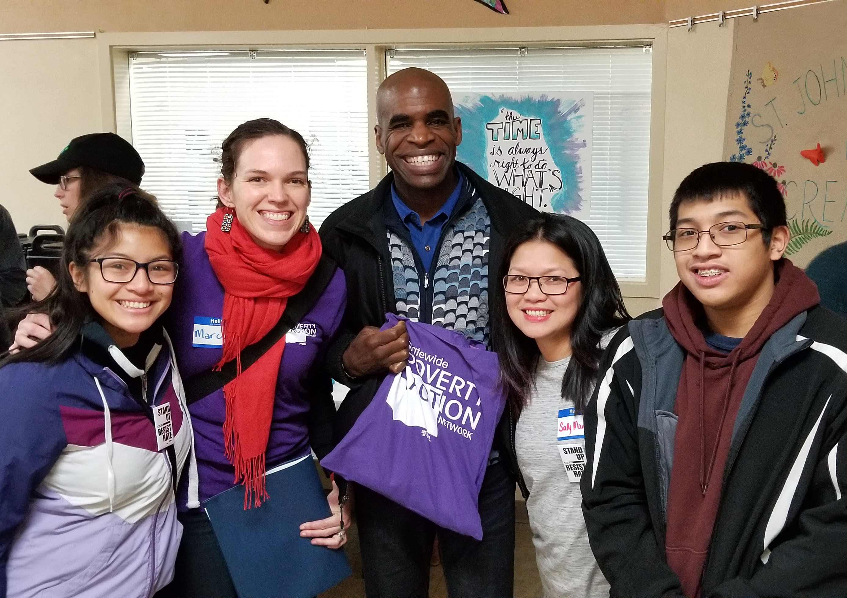 Sally Mary de Leon and her kids with President & CEO Gordon McHenry Jr. and Advocacy & Statewide Poverty Action Network Director Marcy Bowers on MLK Lobby Day (photo courtesy of Sally Mary de Leon)