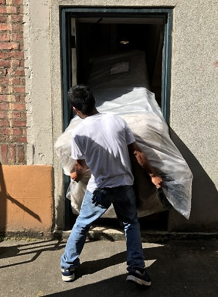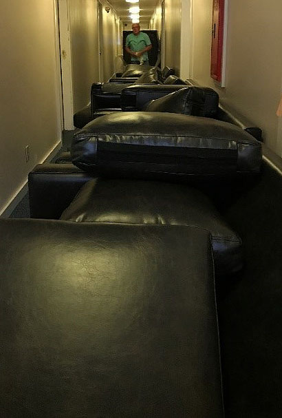 Featured image at top: Josh Underhill, left, carries one of 31 new sofas into Broadview with his staff members.