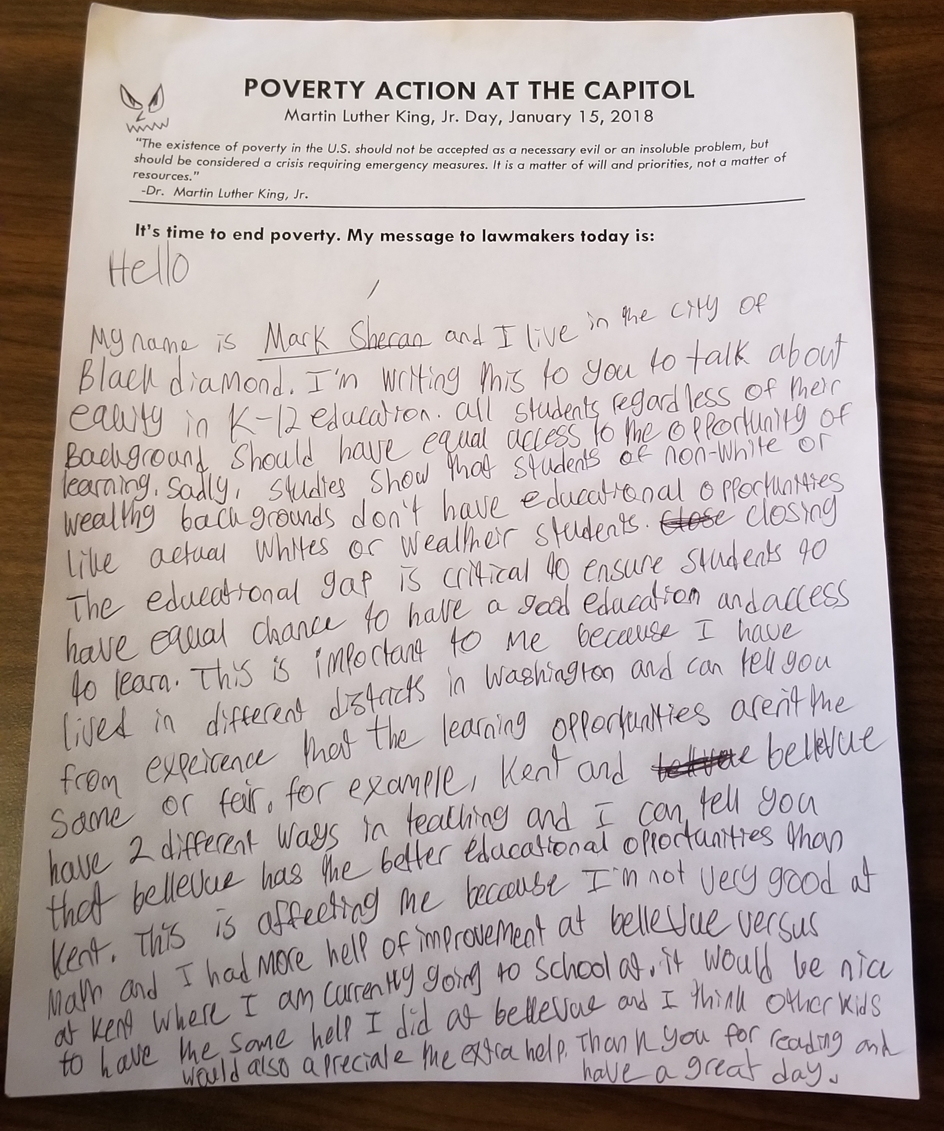 MLK Lobby Day attendees have the opportunity to visit their legislators’ offices to raise their voices on issues that are most important to them and their families. Mark and Bernadette wrote and hand-delivered the letters below to their legislators’ offices — getting first-hand experience advocating to make real change.