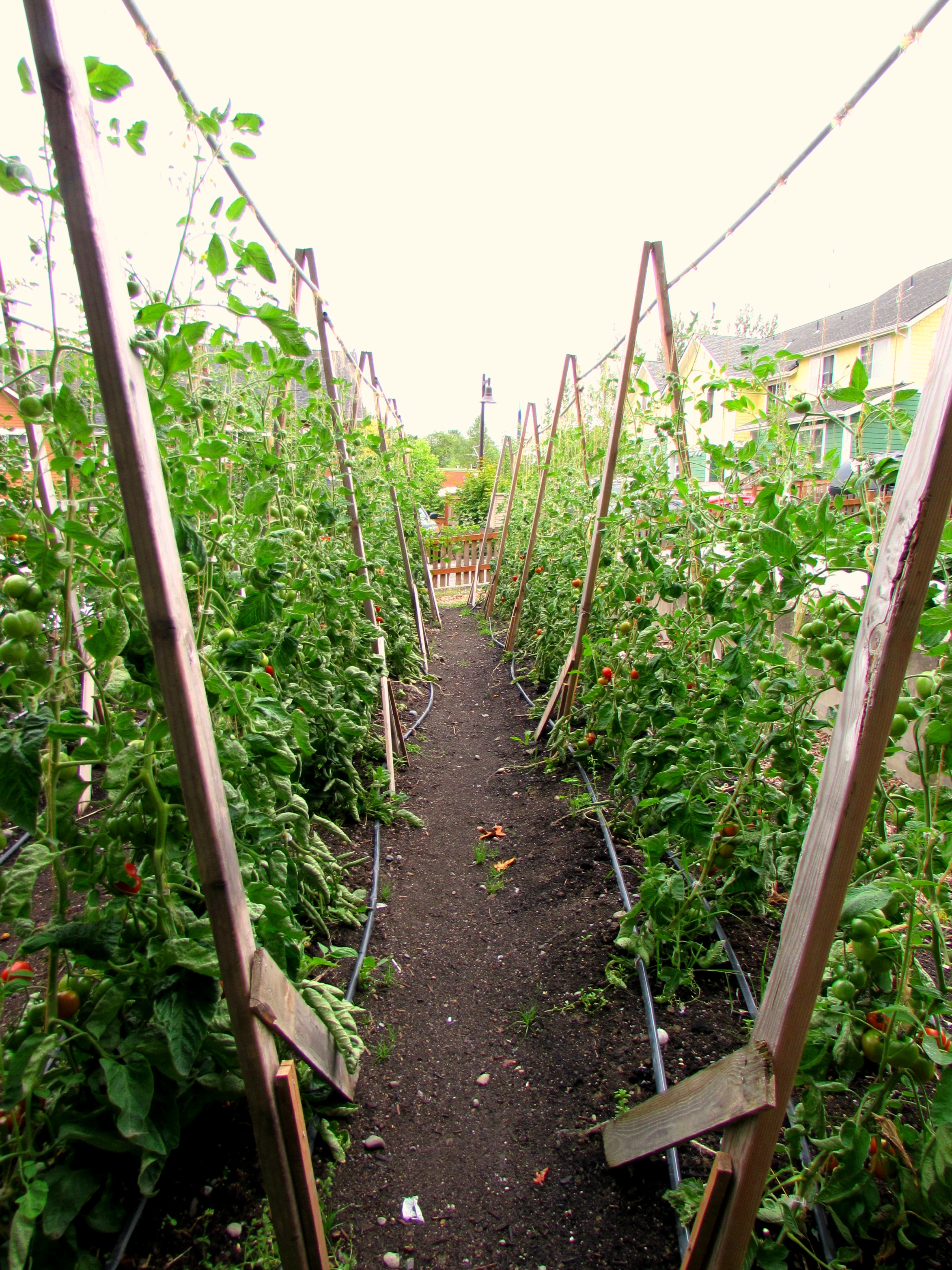 But three light rail crossings and two U-turns later, a large recently installed sign told me that I’d arrived to a narrow (1/2-acre) strip of land that would otherwise be overgrown with blackberry bushes and giantess maple-looking trees. The strip has been turned into a full-blown farm in which 100% of the produce goes to local residents of the Rainier Vista housing development in the Rainier Valley neighborhood and the Rainier Valley Food Bank.