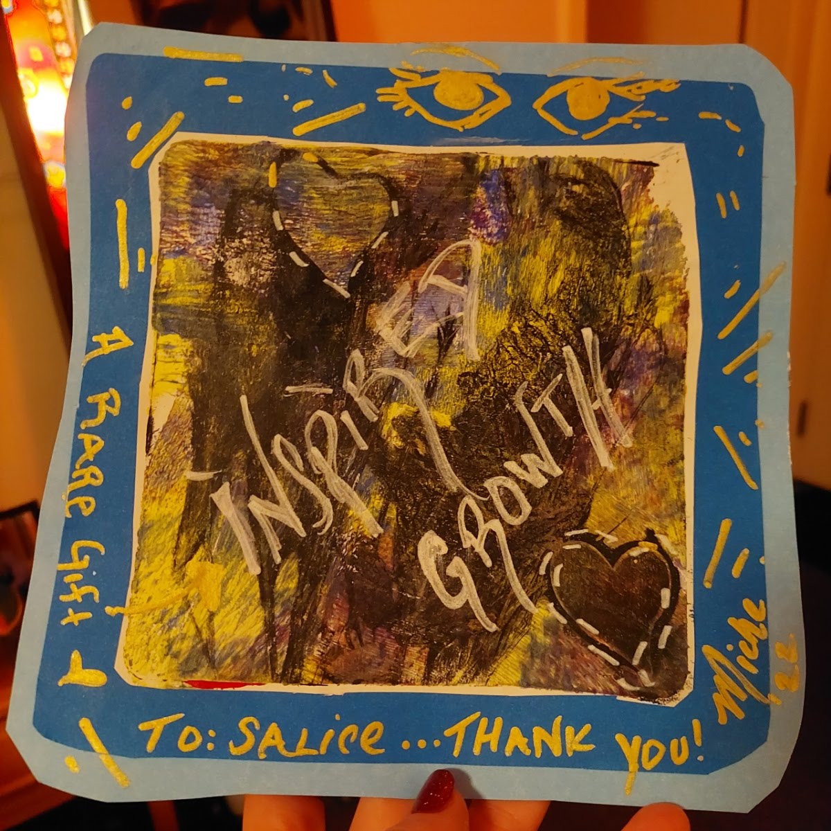 But the thing that truly sustained her through the trauma of homelessness was her newfound love of making art, even when it was just spray paint on a scrap of cardboard or a concrete wall. Michelle had never been an artist before, but now making art became an essential part of who she was.