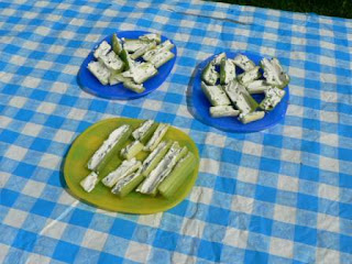Mix up the herbs and cream cheese and smear it onto the celery, it’s as simple as that.